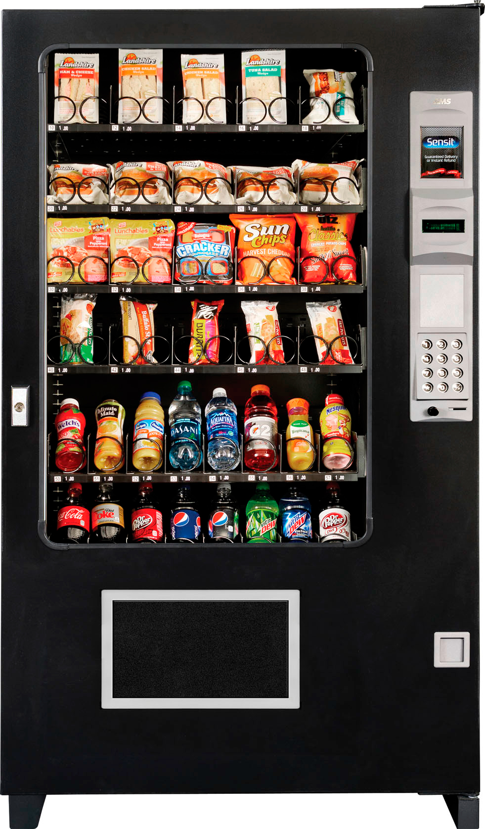 Son dos maquinas en una, vende alimentos y refrescos de botellin